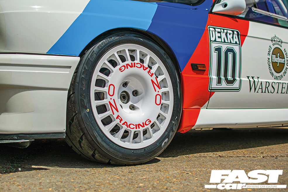 The brakes, meanwhile, use four-pot Brembo calipers up front, vented discs with aluminium bell housings while at the rear sit Moseley Motorsport-supplied calipers and discs and there are braided hoses all-round, delivering serious stopping power lap after lap. Finally, we come to the wheels and that’s one area where there’s always a bit more flexibility, especially with this being a road-legal build, so Steve explored his options fully. “I always wanted period-correct wheels and considered many options including BBS RSs but finally opted for these wheels after the manufacturer agreed to build them in the size and offset I wanted,” he explains, that being Compomotive and the wheels being the company’s TH design, with these 17s wrapped in Toyo R888R rubber and they are the perfect choice for this motorsport build and suit the E30 so well.