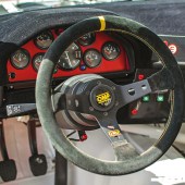 First of all, this car looks the absolute business, resplendent in its Warsteiner livery and it is every inch the full-on racing machine. The shell was media blasted back to bare metal, fully seam welded then resprayed in its original Alpine white III, before the Group A roll-cage was fitted, which incorporates front and rear suspension mounting points and the diff. The car wears Sport Evo wings, a thinner slat front grille and the drag-reducing bonnet gap rubber strips, the front and rear bumpers along with the boot lid are made from ABS plastic, and then you’ve got the Group A elements, the carbon front splitter, carbon cold air intakes for the brakes, carbon door mirrors, the driver’s one incorporating an air intake to cool the person at the wheel, a single-wiper conversion and a rear spoiler with adjustable Gurney flap. Other additions include the FIA-approved towing eye, the Armourfend that has been applied to areas vulnerable to stone chips, and the Bosch high-output headlights.