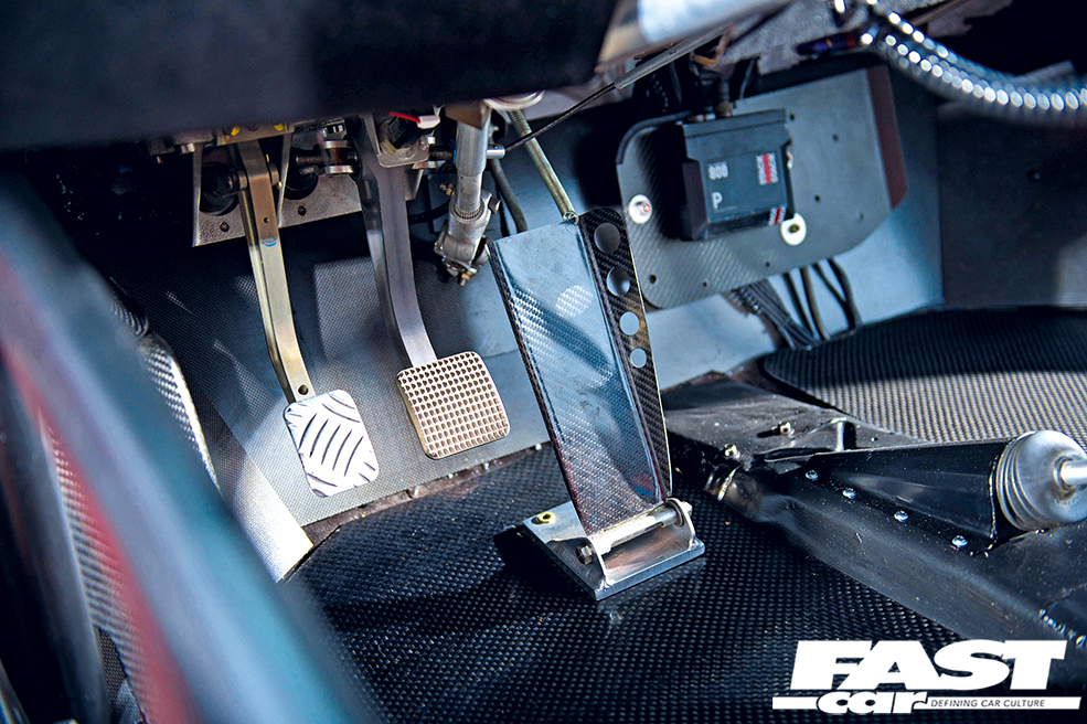 A Sparco bucket seat is bolted to the floor itself, meaning Guido had to construct a special one-off dash in order to be able to properly see out of the windscreen. The steering column is made from alloy and features the power steering system cribbed from, of all things, a Toyota Carina STW, while the pump first saw service in a Porsche 997. You’ll also spot a Stack race display with built-in data analysis software and a radio for keeping in touch with race control.