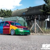 The Harlequin idea will probably be familiar to most readers; essentially, in 1995 Volkswagen released a special edition Polo with its panels variously painted in Flash Red, Ginster Yellow, Pistachio Green and Chagall Blue – the way they achieved this was to take finished cars in each colour and swap the panels around, and it’s become a cult hit. We’ve seen the home-built Harlequin treatment on everything from Mk3 Golfs to Passat CCs. However, most people tend to stick to those original four colours, whereas Joseph had something more super-freaky in mind.