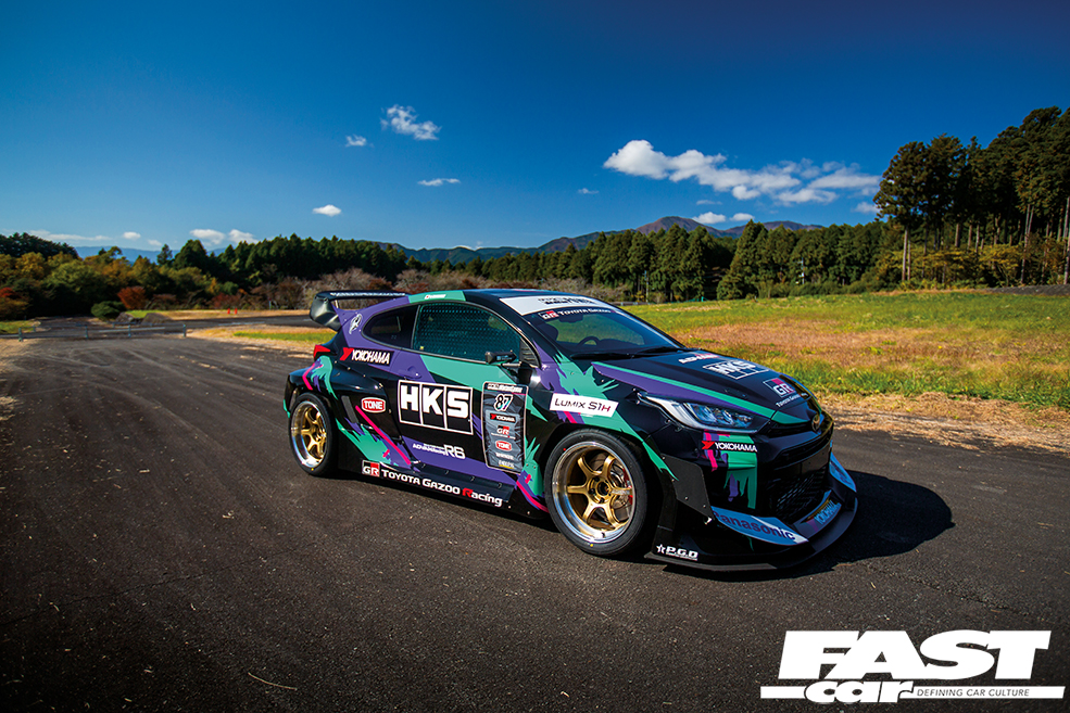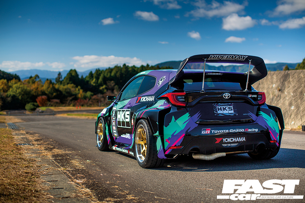 A while back, Gazoo Racing supplied HKS with a couple of pre-production cars so they could get a head start in their GR Yaris aftermarket tuning parts design and production program. As you may have seen on social media, Japanese drift god Daigo Saito got his hands on a GR Yaris too, and that car – and the one we’re looking at today – have both been on the receiving end of a Pandem wide-body aero kit that Kei Miura, of Rocket Bunny fame, managed to produce in lightning-fast speed.