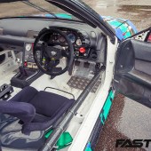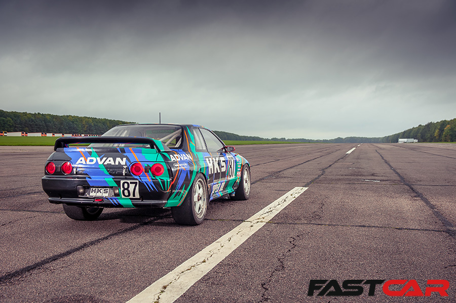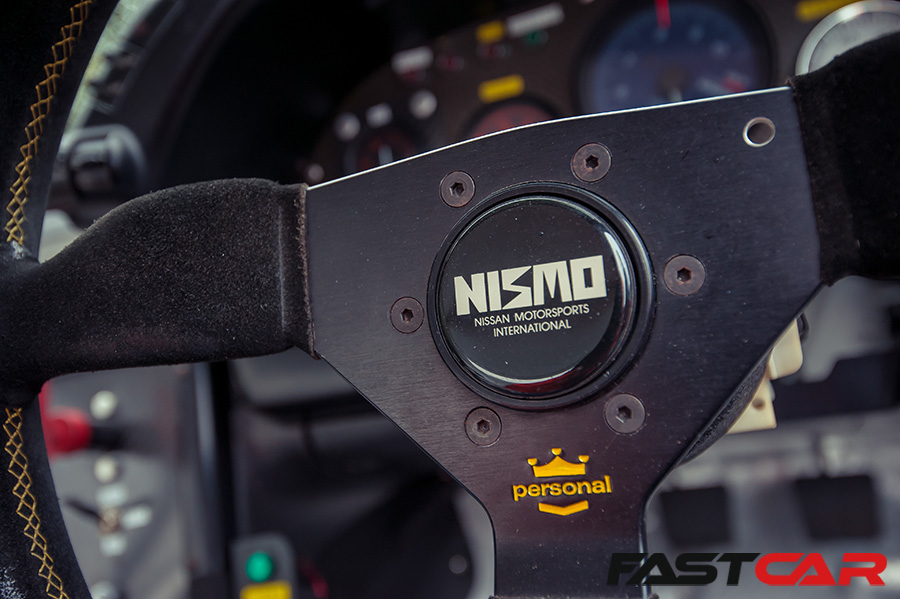 OEM R32 GT-R bodykit, Nismo bonnet and boot lips, aero door mirrors, polycarbonate side and rear windows, HKS ‘Oil Colours’ race livery