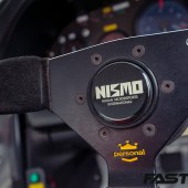 One dominating part of this GT-R’s character is the straight-through, side-exit exhaust. With a pipe for each turbo, it’s loud and obnoxious and often popped huge flames when changing gear, as unburned fuel shot out of the exhaust valves and ignited against the hot metal interior of the pipes. Originally believed to have had a titanium system in the same design, stainless steel pipes were used with HKS elbows and downpipes during the rebuild. At a recent noise test, it made an ear-splitting 122dB while stationary at 6,000rpm. Just imagine how loud it is at full boost and over 8,000rpm!