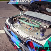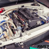 2,568cc, 6-cyl, 24v twin-turbo RB26DETT, 86mm bore x 73.7mm stroke, 8.5:1 compression ratio, machined block, lightened and balanced OEM bottom-end by HKS, Nismo forged pistons, HKS custom camshafts, re-flashed OEM ECU by HKS, OEM turbochargers machined by HKS, HKS turbo elbows and downpipes into side-exit straight-through Titanium exhaust, 120-litre fuel tank mounted in boot, 4x Bosch 044 fuel pumps, Earl’s fuel lines, stainless steel mesh air filter, OEM spec front-mounted intercooler, Calsonic radiator, engine oil cooler (After 2010 Rebuild) HKS F-Con V Pro ECU, HKS EVC V boost controller, HKS billet crankshaft, HKS con-rods, HKS forged pistons, prototype cams and turbos designed to replicate the performance of the time, HKS turbos, HKS turbo elbows and downpipes into straight-through stainless-steel side-exit exhaust, HKS Superpowerflow air filter, HKS intercooler and pipework, TRAD radiator, HKS oil cooler