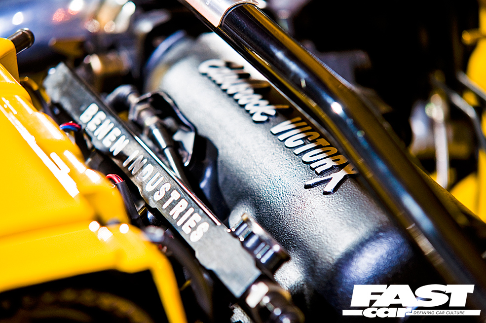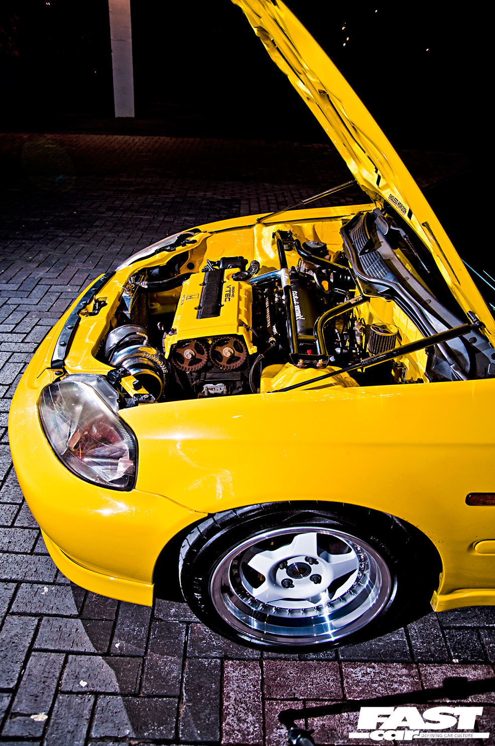 Tried and tested upgrades such as the Integra Type-R subframe show purists that Davinder has done his homework, while the 8x15in Cades wheels push the boundaries with exterior upgrades. And that’s not even looking at its party piece –the engine.