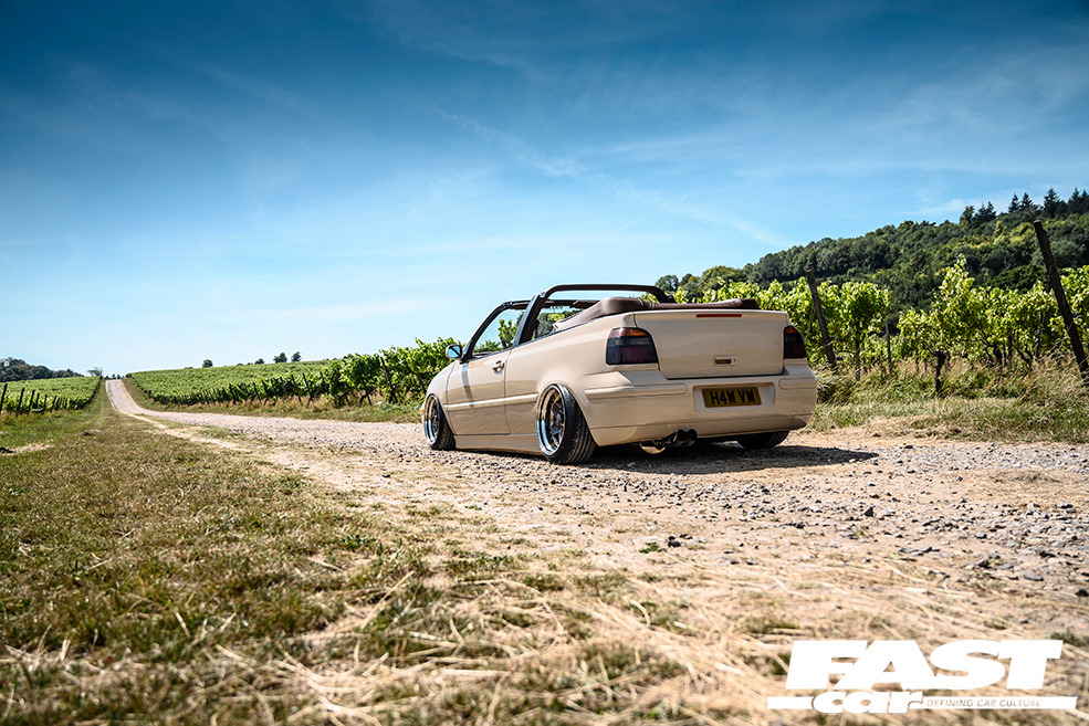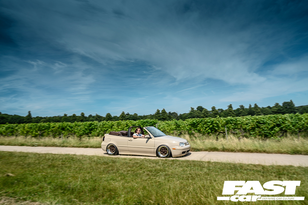 VWs were in his blood from the start, having grown up around various classics that his dad was working on, and Max’s first car – a Lupo – provided a solid learning curve. Road-trips with mates to buy wheels, fitting coilovers on the drive, this is the stuff lifelong memories are made of. Around this time he started an apprenticeship at celebrated trimmers d:class Automotive, which was when the cabrio arrived on the scene. Then another Lupo appeared, and a ’65 Beetle, and a 6N Polo rally car… but all the while the Mk3.5 had been lurking in the background waiting for its time to shine.