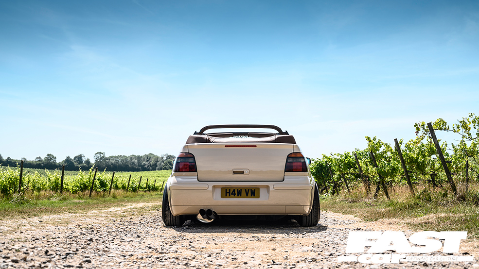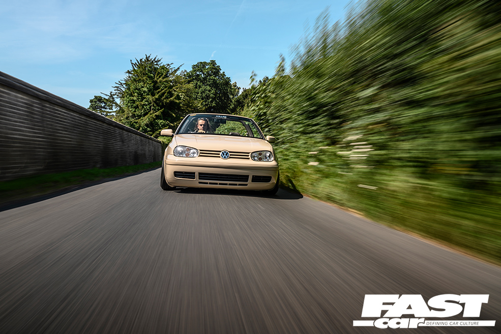 The pursuit of effortlessness is something that really characterises the modern world. A huge amount of effort goes into the act of making life simpler – just look at the radically reworked interior of Max Hawkes Mk3.5 Golf cabrio for proof. He can take his phone out of his pocket and leave it on his custom wireless charger, and it’ll automatically start working with the wireless CarPlay function on his cutting-edge Kenwood headunit. How clever is that? This act of casual simplicity is shored up by an incredible level of complexity and effort, and that serves as a symbol for the car as a whole. Classy, crisp, tastefully finished… what appears at first glance to simply be a nicely looked after 1990s Golf reveals ever-deeper layers of graft and sweat the more you look. What we’re observing here is four years of solid effort, the upshot being one of the most comprehensively modified VWs on the scene today.