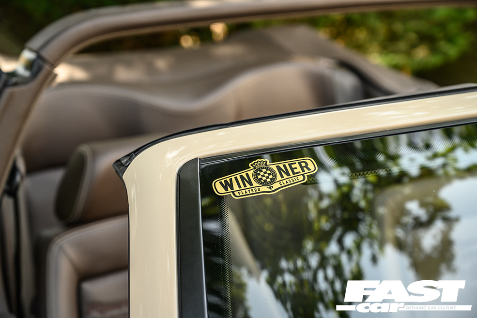 With the Players Classic fast approaching, Max decided to trim two of his custom wheels in matching leather, before trimming the original hoodbag to match. Everything on the car that could be refinished was, with our hero using a full six hides of brown leather. “My colleagues and boss helped massively, but nearly all of the retrimming was done by myself,” he says. “As a final flourish, I got my friend James Giddings to re-cover the BBS steering wheel – he said it was the hardest wheel he’d ever retrimmed in his entire career, a fact he pleasantly reminded me of every single day!”