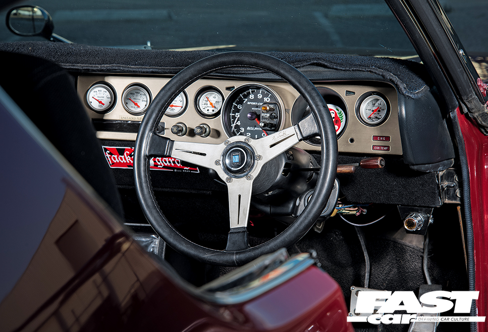 Recaro bucket seats with Sabelt harnesses, Nardi steering wheel, Autometer Ultra-Lite gauges Razo pedals