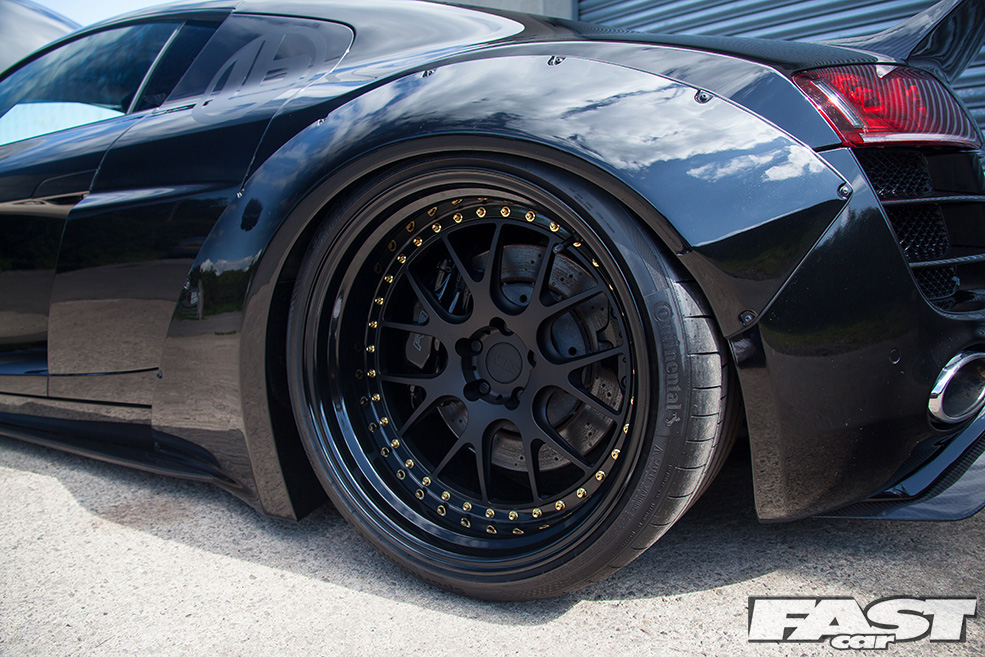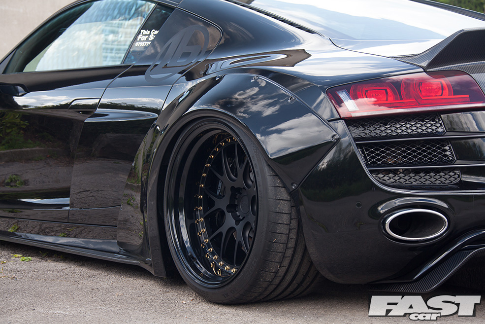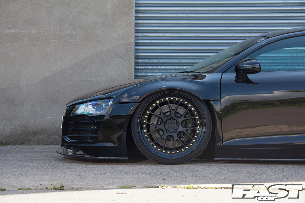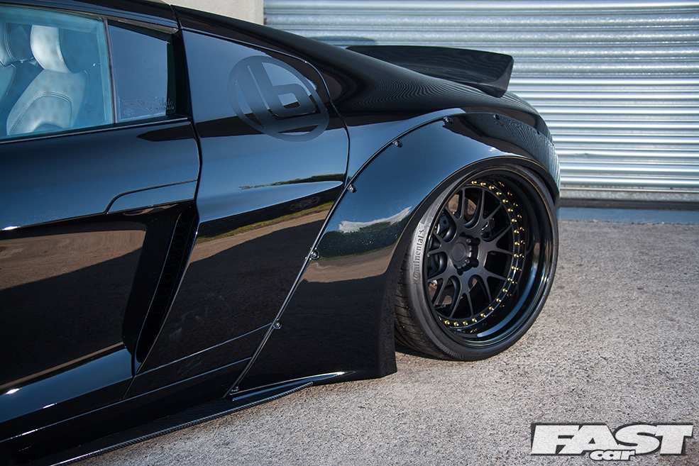 The job took around 12 weeks to complete, which gave Chris and the crew plenty of time to consider what colour to paint it. “In the end, we decided to go all black, to be different to all the other Liberty Walk cars out there – it’s a bit more subtle without all the stickers.” Well, as subtle as a big, black, wide arch R8 V10 can ever be.