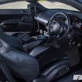Keen-eyed readers may spot the different front bumper – it’s from a 4.2 V8 R8. “We swapped in a V8 bumper as, I think, the intakes look better than the V10 version,” explains Chris. With the gloss-black grille and evil looking front splitter, it gives the R8 a proper snarl.