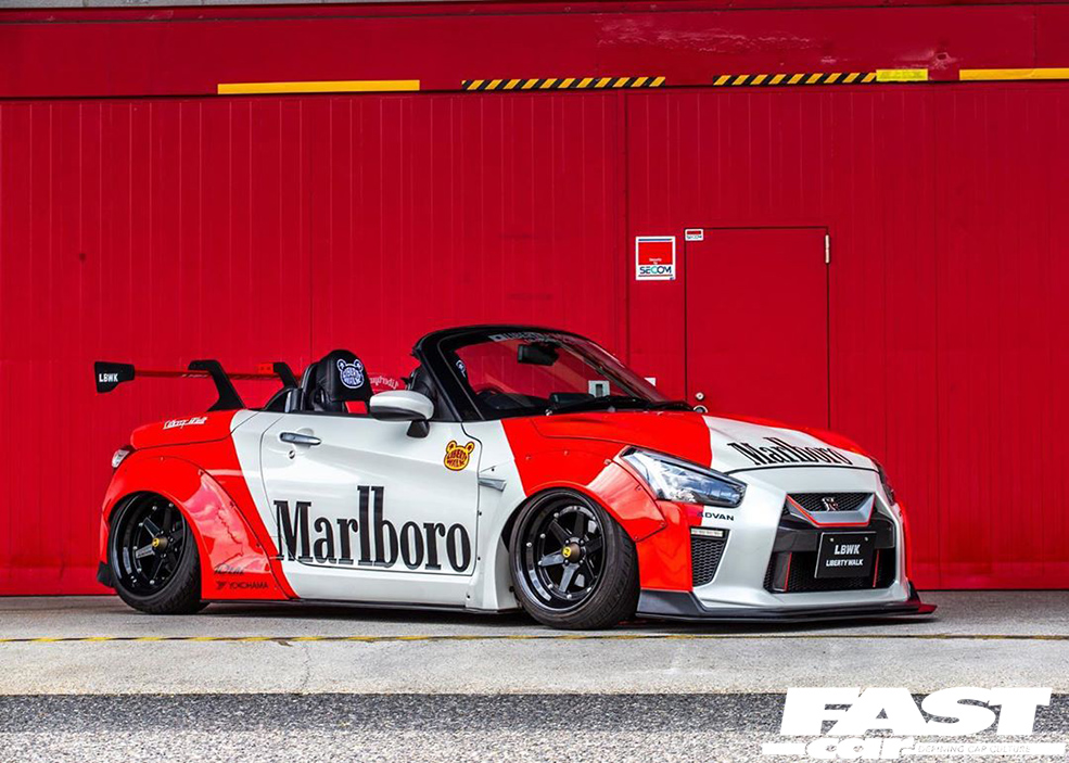 We’ve already seen what happens when the unhinged lunatic artisans at Liberty Walk get their hands on the baby Daihatsu Copen: applying their own particular brand of widebody mayhem to this cute little open-top formula leads to something hilariously tough for such a small package.
