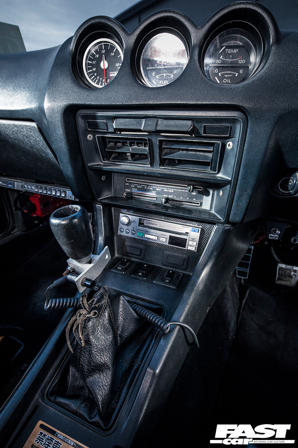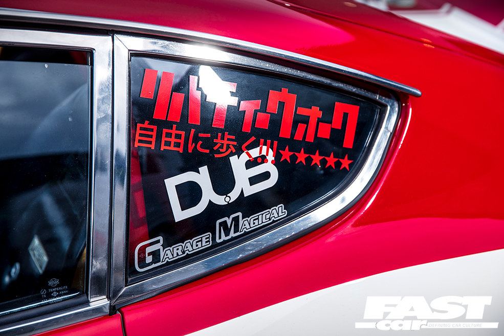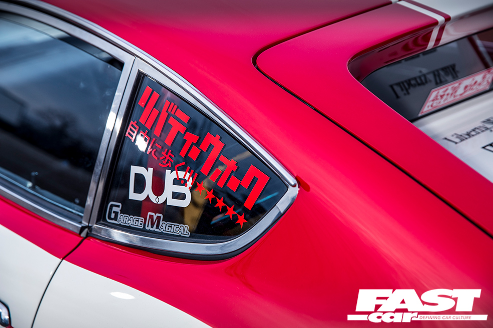 What’s important to remember about Kato-san is that he’s a connoisseur, and an expert on the roots of tuning culture; this isn’t just a job, it’s a lifestyle. He’s also a flamboyant character who’ll never settle for half-measures and loves to put on a show – that’s why he insists on infiltrating mainstream car shows and sneaking in the latest LBW-kitted McLaren, then parking his wideboy RX-3 outside and revving the nuts off its rotary just to scare people. He’s obsessed with the details, and the way a car sounds is integral to the plan; indeed, with the Fairlady Z, this takes on a classic twist in the form of its audio system… peer inside and you’ll see a period Pioneer stereo with separate graphic equaliser, and shelf-mount TS-X11 speakers – because that’s what the cool kids had a generation ago. Combine that with the induction roar from those carbs and the rasping tails, and you hear the Fairlady before you see it.