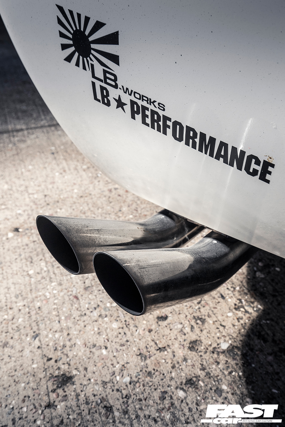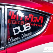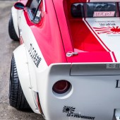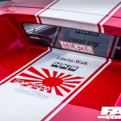 The overall profile of the car is slippery and bullet-like, that G-nose at the business end complemented by an AIRONE tailgate at the other; this one piece makes an extraordinary difference to the silhouette, changing the big slanted rear window into a flat deck with flying buttresses. Every inch of the car positively bristles with track-ready aggression. So the ethos of this car might be making a little more sense to you now – Liberty Walk’s modern cars seek to emulate the vibe of this badass retro; the width, the footprint, the rage, the careful eye for proportion. It’s a masterpiece.