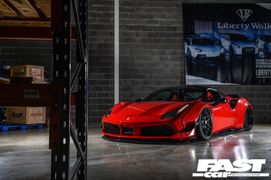 An important lesson for supercar posterity: stick the engine in the middle, it’s better. But that’s not the only schooling going on here – brace yourselves folks, because Liberty Walk are having a go at being smooth and subtle with Ferrari 488 GTB…