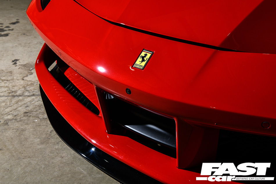 The man with the gen is James Pearman, Director of The Performance Company. Regular readers will remember him the deep-green LB Works Lamborghini Aventador that he was the puppetmaster above. This Ferrari is another customer build, masterminded by James and his team. “Our client had first seen the new Ferrari 488 unveiled at the Geneva Motor Show,” James explains. “He knew that he wanted one as soon as he saw it, so he arranged for a car to be sourced in the UK to be built by us before shipping to his home in Pakistan.”