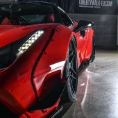 Liberty Walk LB Works CFRP wide-arch bodykit and lip kit, Rosso Corsa with Beluga Black accents