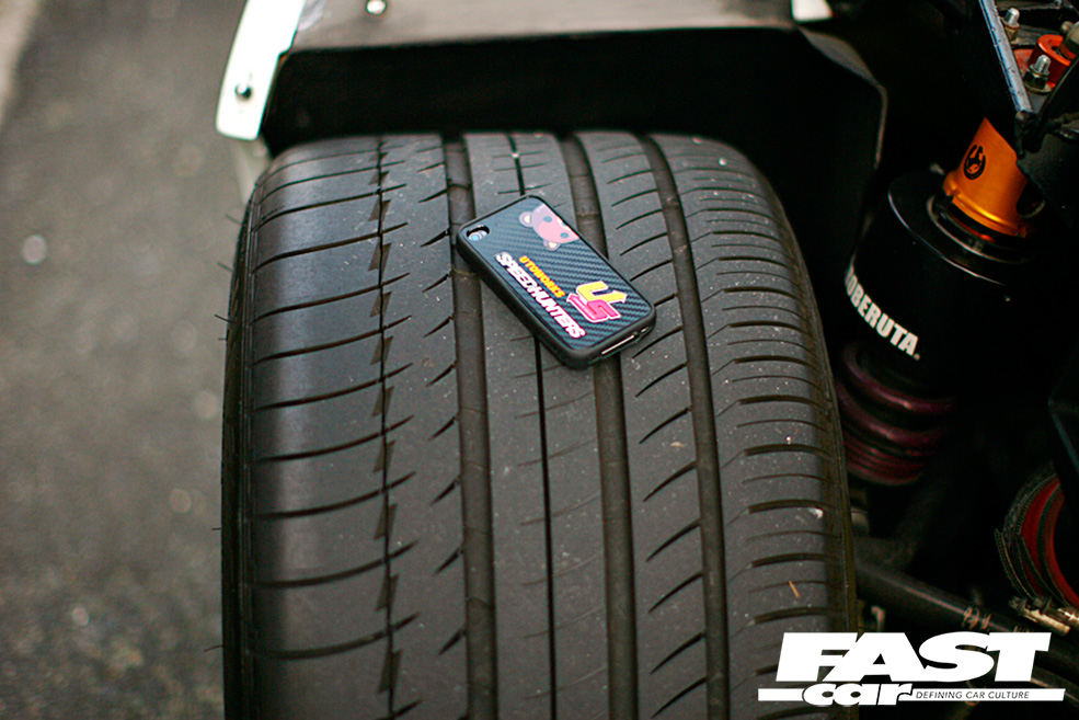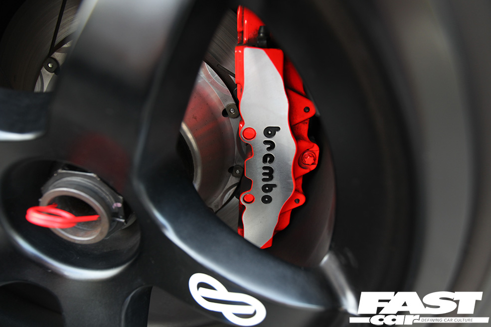The single lug nut, 18in lightweight wheels are finished in matt black and measure a whopping 12J at the rear and 10J up front. Tyres of choice are Michelin Pilot Sport, 265/35 for the front and steamroller-wide 335/30 at the rear. With no form of traction control, and a whopping surge of torque available in the mid-range, it’s no wonder this beefy size was required to attempt to channel all that fury to the Japanese tarmac!