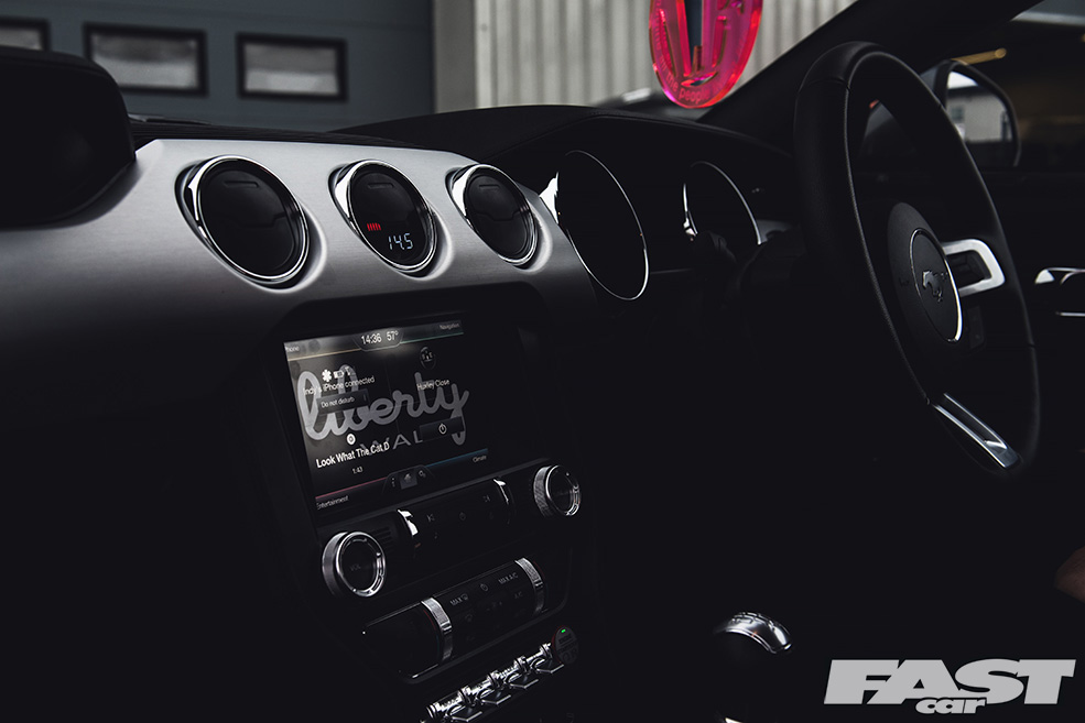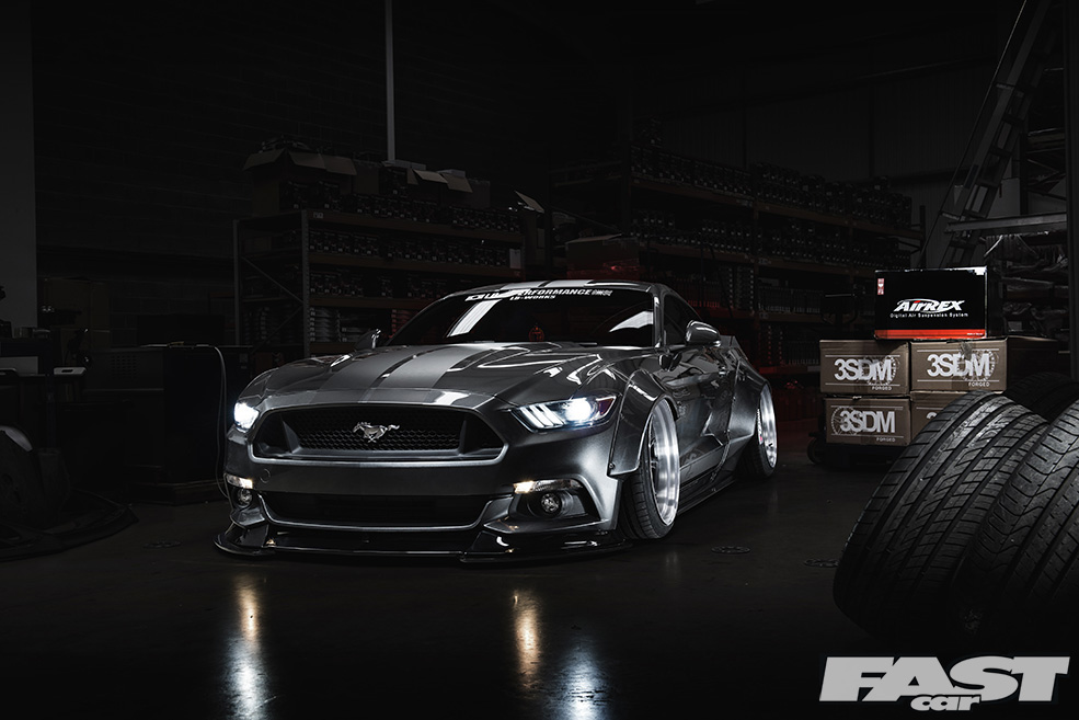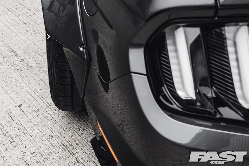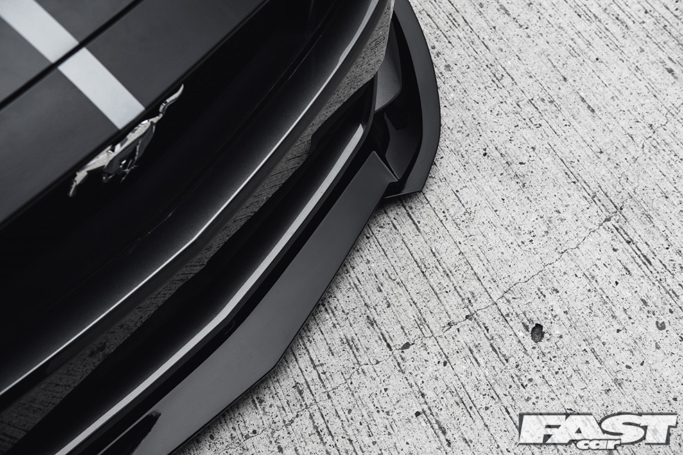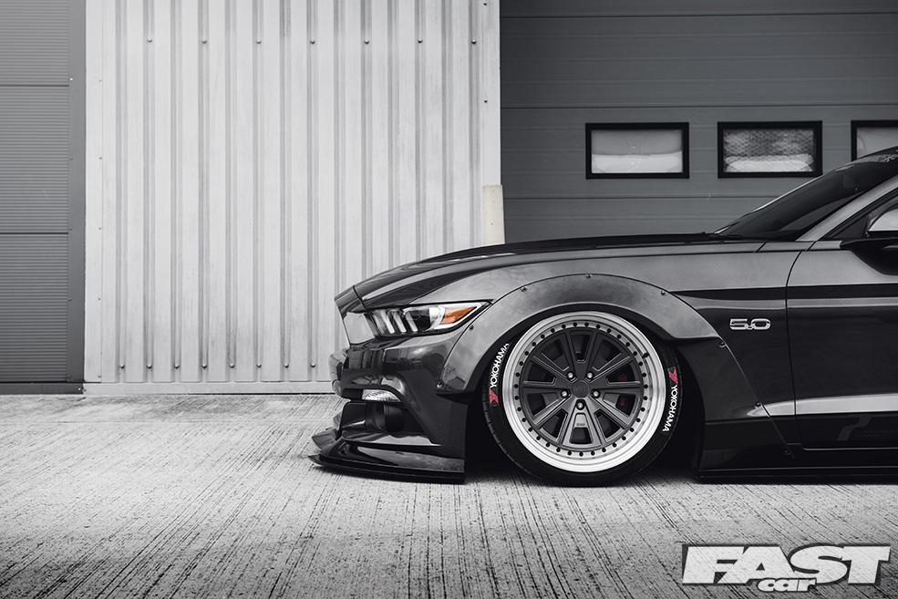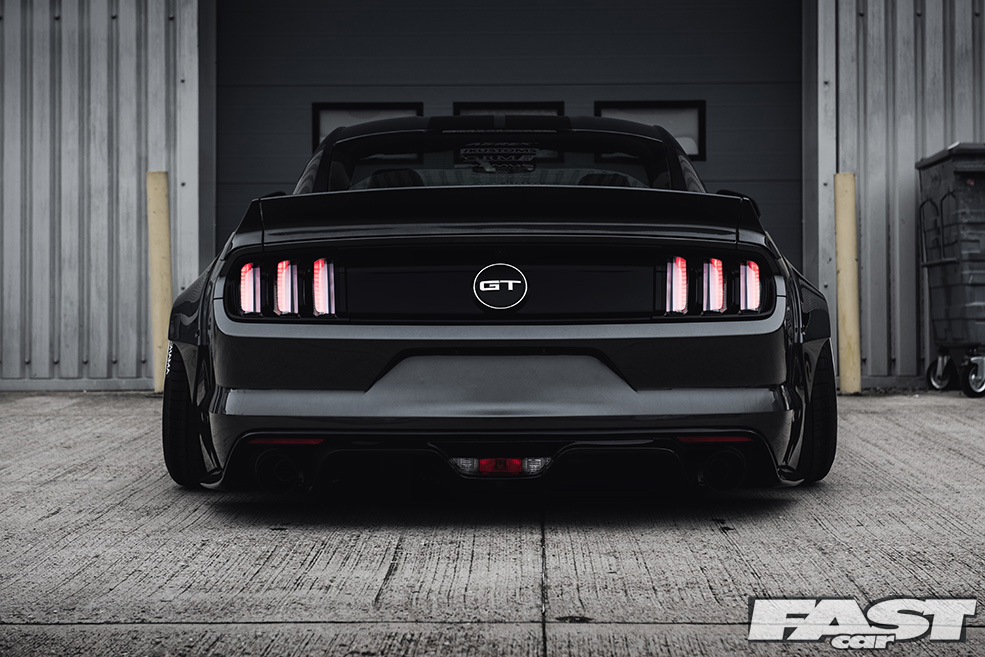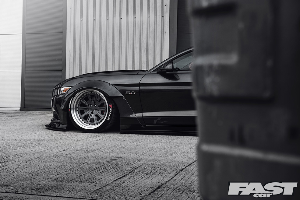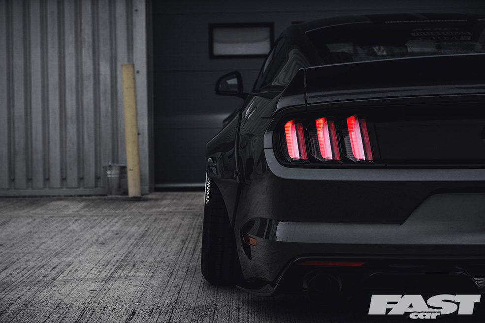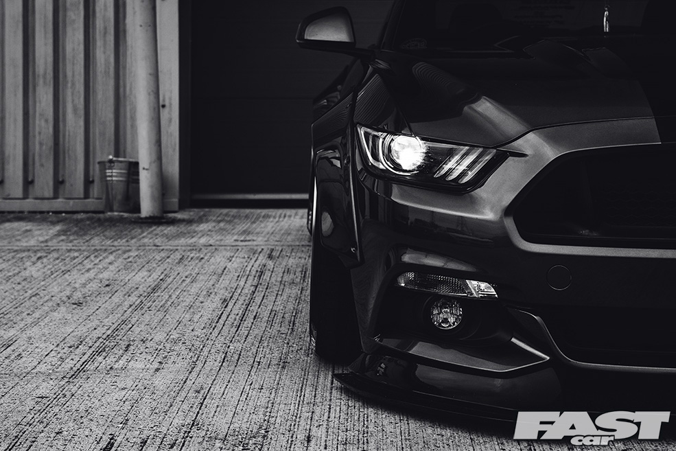 There’s no denying that the finished article is aggressive (from the front-on the Mustang now looks a little like a bulldog chewing up a wasp) and purposeful (seriously, you wouldn’t want to meet this thing down a dark alley after the pubs have kicked-out), and much of this can be laid at the door of both the kit and the air suspension the guys from The Performance Company have opted to fit.