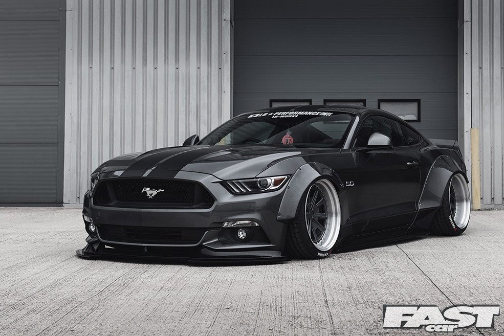 One firm that’s been especially quick off the mark when it comes to netting a UK ‘stang is Liberty Walk, a name you might well associate with some of the most extreme, hyper aggressive bodykits and styling packs that money can buy. Indeed, this very car, the one you see here, was bought by Liberty Walk to use as a demo vehicle, one they could get to work on and use to develop a range of LB Works bodykits.