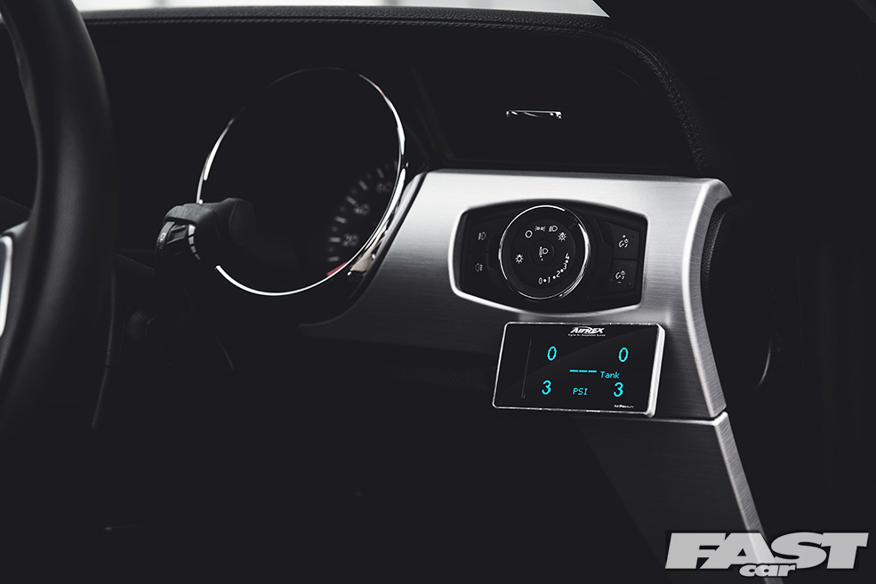 The AirREX system in question is a digital offering with height sensors and, most impressively of all, a smartphone app. It says much about the lengths to which modern tech and classic automotive thinking can be synced that this is even possible, and it’s probably safe to say that there’s nothing cooler than swiping your iPhone and watching your car descend to the ground. Trust us on that by the way, we spent a good 20 minutes raising and dropping the LW ‘stang and didn’t even approach becoming tired of it!