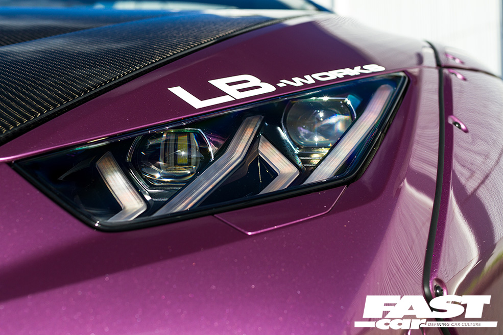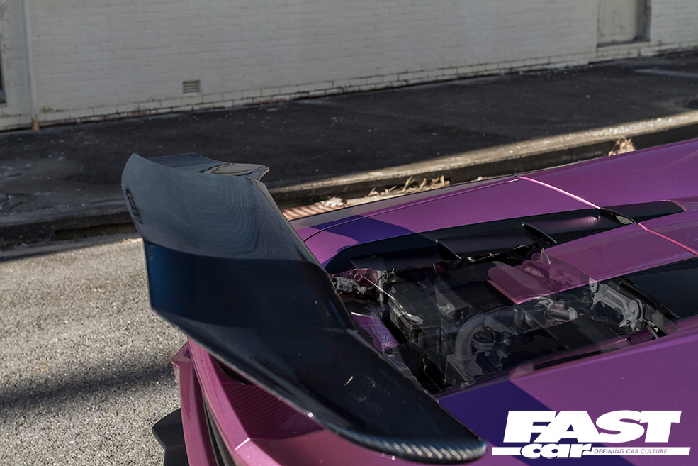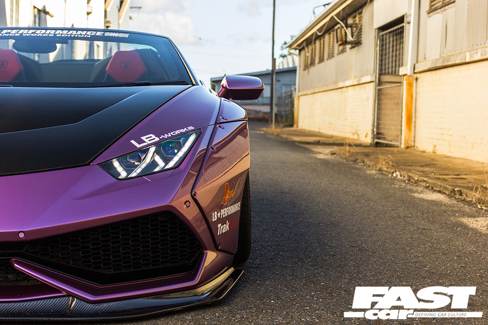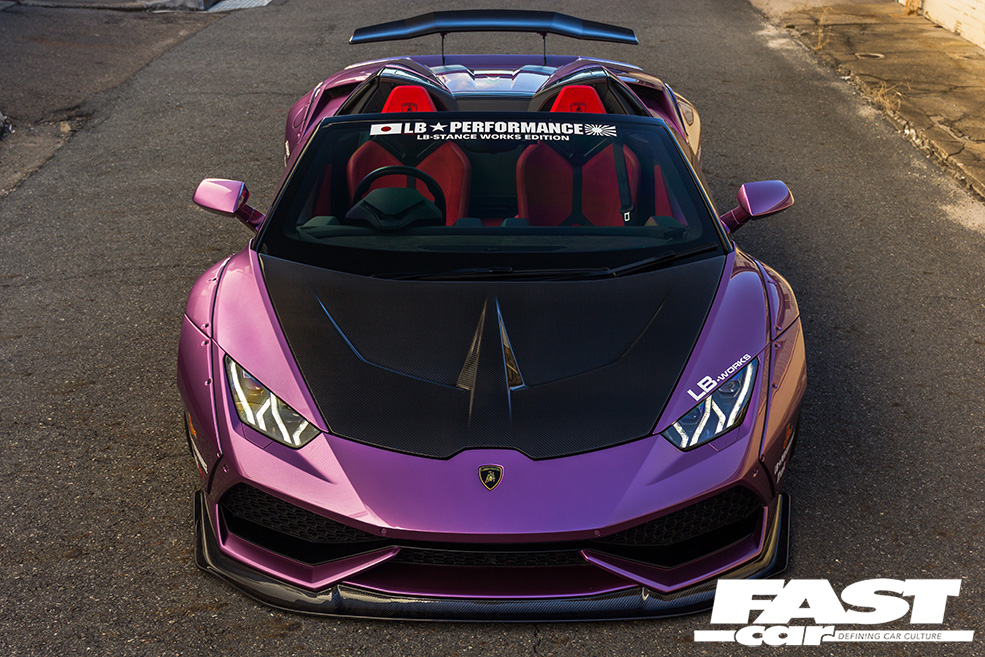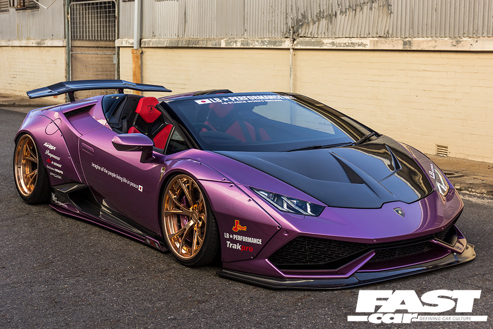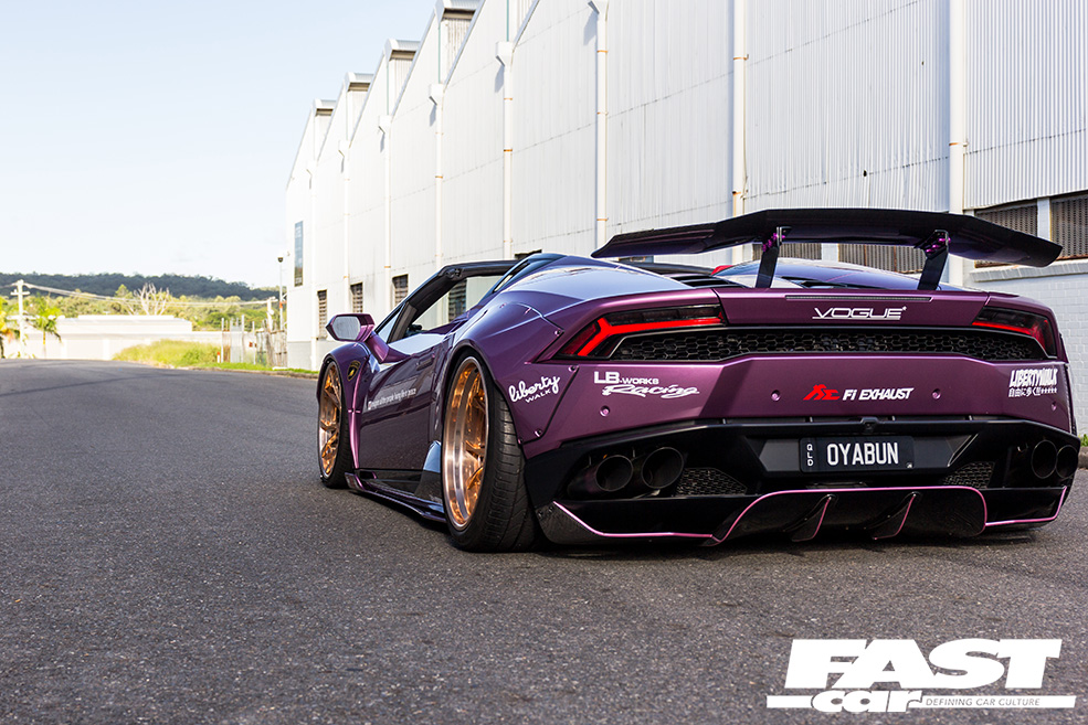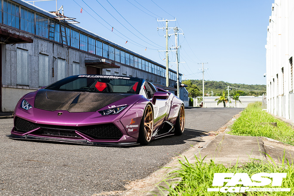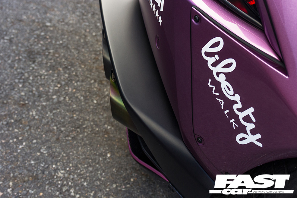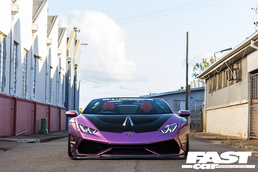 “I was reluctant to cut the guards off a brand new Lamborghini,” Justin admits, totally understandably. “But when I went to Liberty Walk in Japan, I was so impressed with the company’s work and craftsmanship, and the culture they’ve created for car enthusiasts, so I jumped into ordering the kit right away! The full widebody kit was supplied by Vogue Industries, who are also known as Liberty Walk Australia, which I then brought to Camerons Bodyworks in Brisbane to get it fitted and painted.”