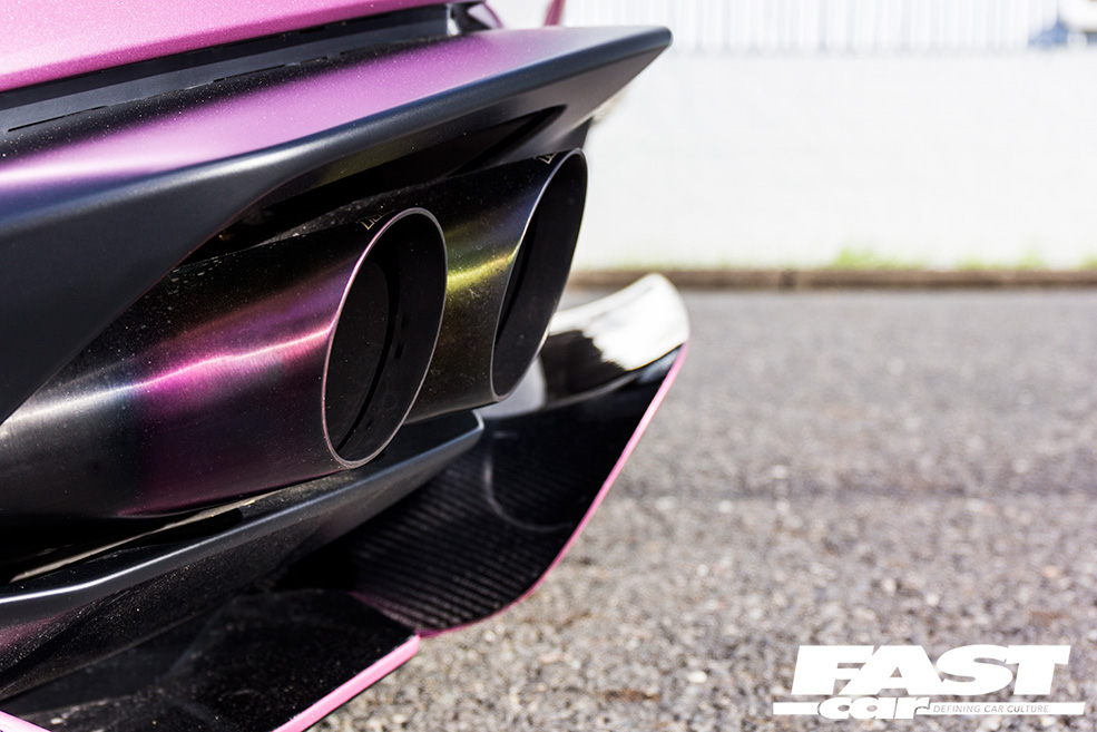 While the work was being carried out to that fresh and unsuspecting LP610-4 shell, Justin had a little bit of shopping to do in order to transform the Huracán into a more complete package. First on the list was a full valvetronic system from Fi Exhaust – because while that 602bhp 5.2-litre V10 is a howling beast, it really benefits from open pipes to help it truly find its voice. The Fi Exhaust system is clever because it features the company’s cutting-edge intelligent ECU exhaust control valve – when the butterflies are closed, you can pootle around town without going deaf; click them open and all hell breaks loose, unlocking maximum power and maximum noise.