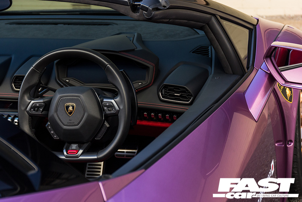 “This car is my second Huracán, but this time I wanted the convertible,” says Justin. “I saw the potential it had to become a car with real impact. So I ordered mine direct from the factory in Viola Purple, in tribute to the Diablo SE30 – I had to wait twelve months for it!”