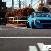Kato-san’s personal motor is certainly a mish-mash of several different styles. Initially, it screams Liberty Walk, with its dustbin-dished rims and super-wide arches. But dig a little deeper to find a car that a whole lot of thought and lifelong passion has clearly been poured into. Kato-san is a proud ambassador of Yamato Damashi, or ‘The Japanese Spirit’, which he is successfully spreading across the global car scene. His no-nonsense attitude has ensured that Liberty Walk is changing the way we look at cars
