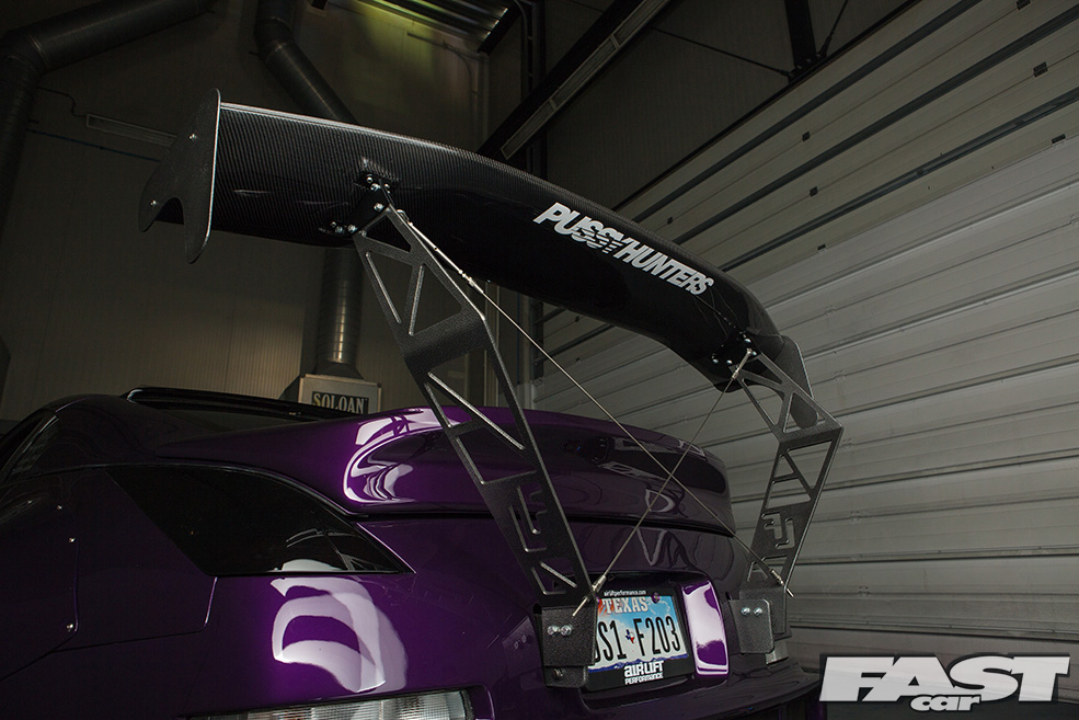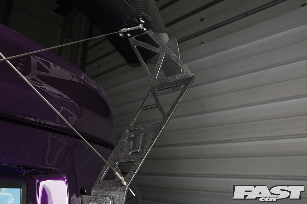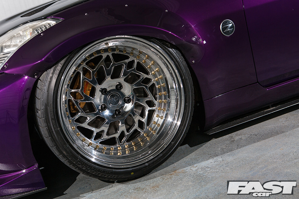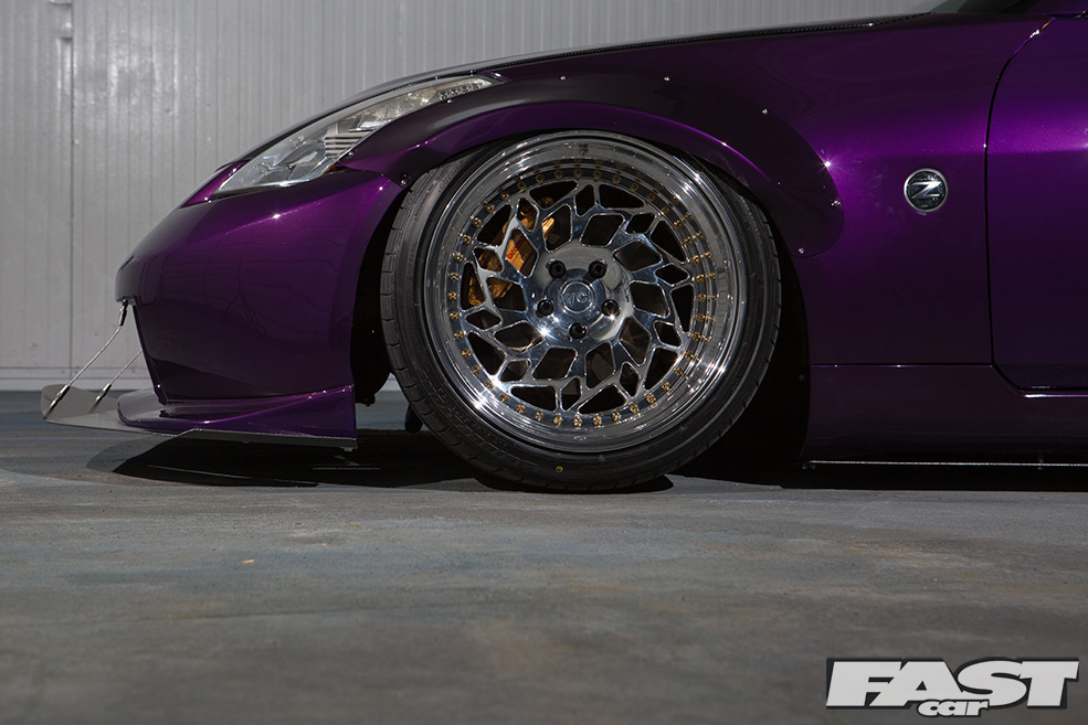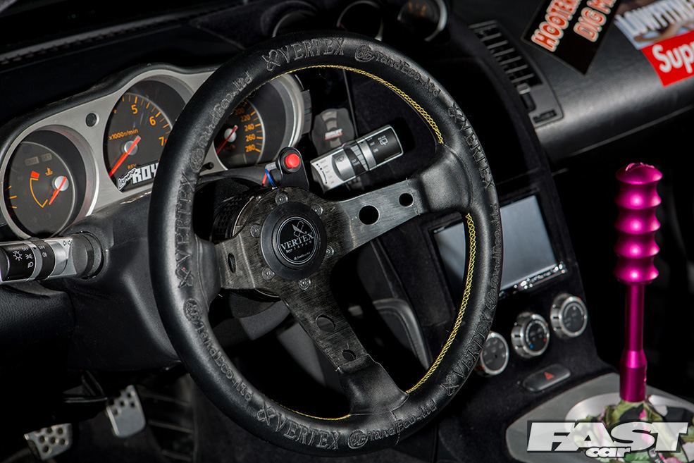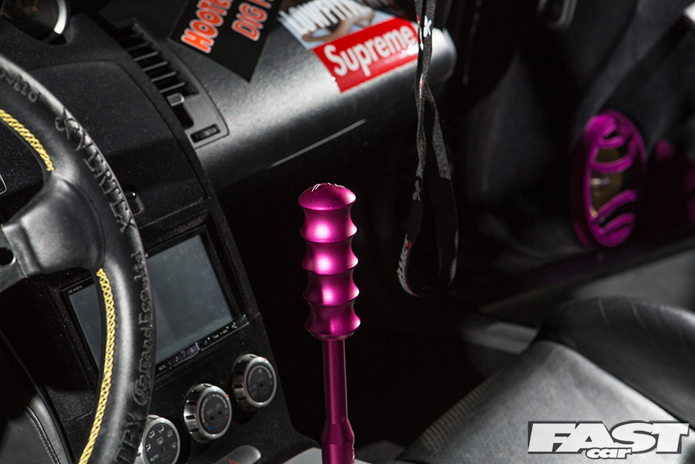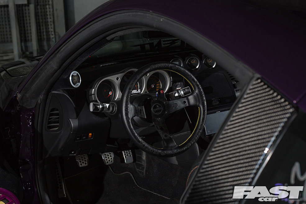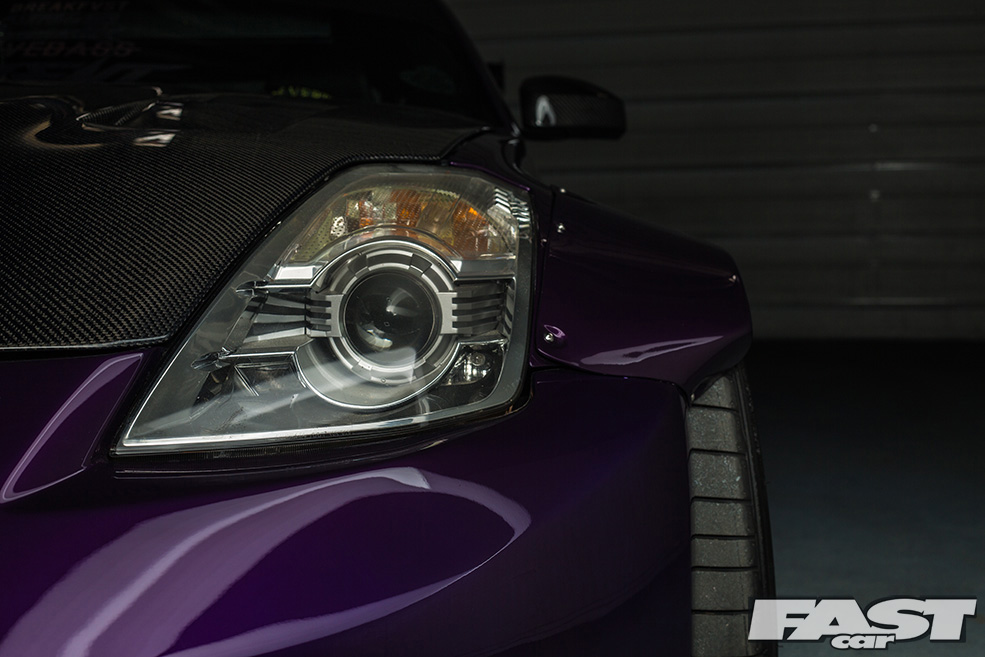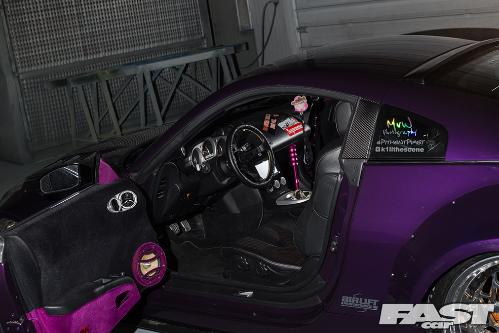 Once a carbon fibre bonnet and 370Z side repeaters blended in on the front wings were added for a bit of extra Z-Car bling, Nick’s V6 brute was ready for a lick of paint. And you’ve probably gathered that he wasn’t settling for a sensible grey hue here. “It’s from a limited-edition Fiat Panda, believe it or not!” he laughs, as he explains the origins of this truly awesome purple colour scheme, that seems to match the outrageousness of those new-found wide lines and brings the whole thing together.