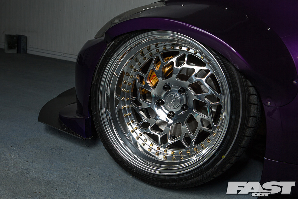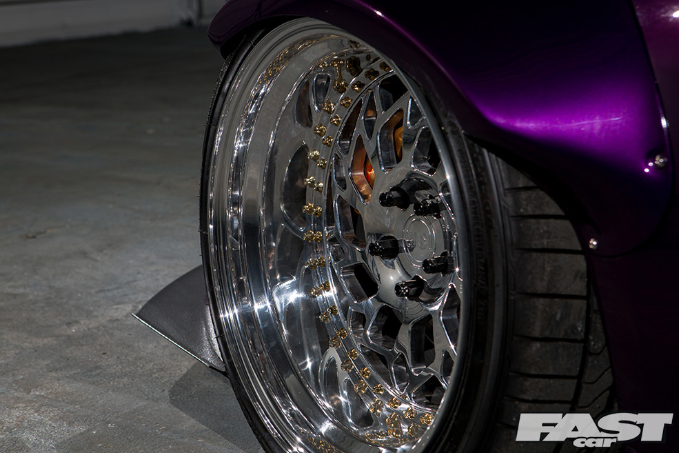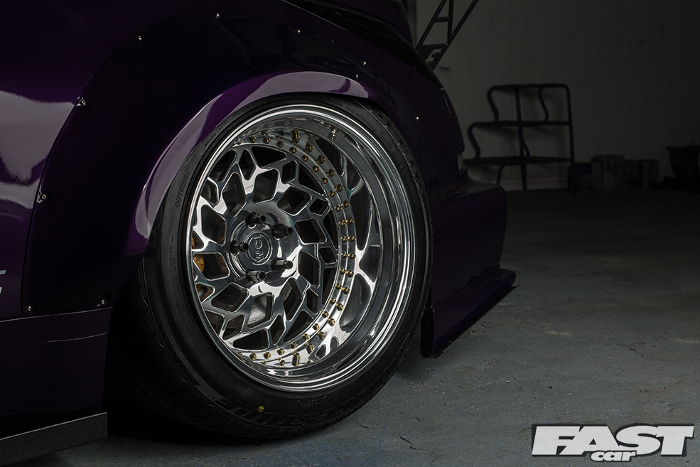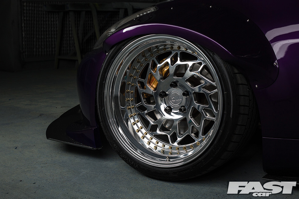 For these, it was back to the States. This time to Michigan-based WatercooledIND for a set of its spanking new forged, three-piece split rims, which Nick ordered up in his fully custom requirements. This meant going for a brain-meltingly 14-inch wide on the rear and 12.5 inches up front, in a diameter of 19 inches and finished off in a fully polished colour scheme with gold hardware. Talk about wheel royalty! It’s pretty impossible to say they don’t look anything short of pornographic now they’re tucked under those cavernous arches.