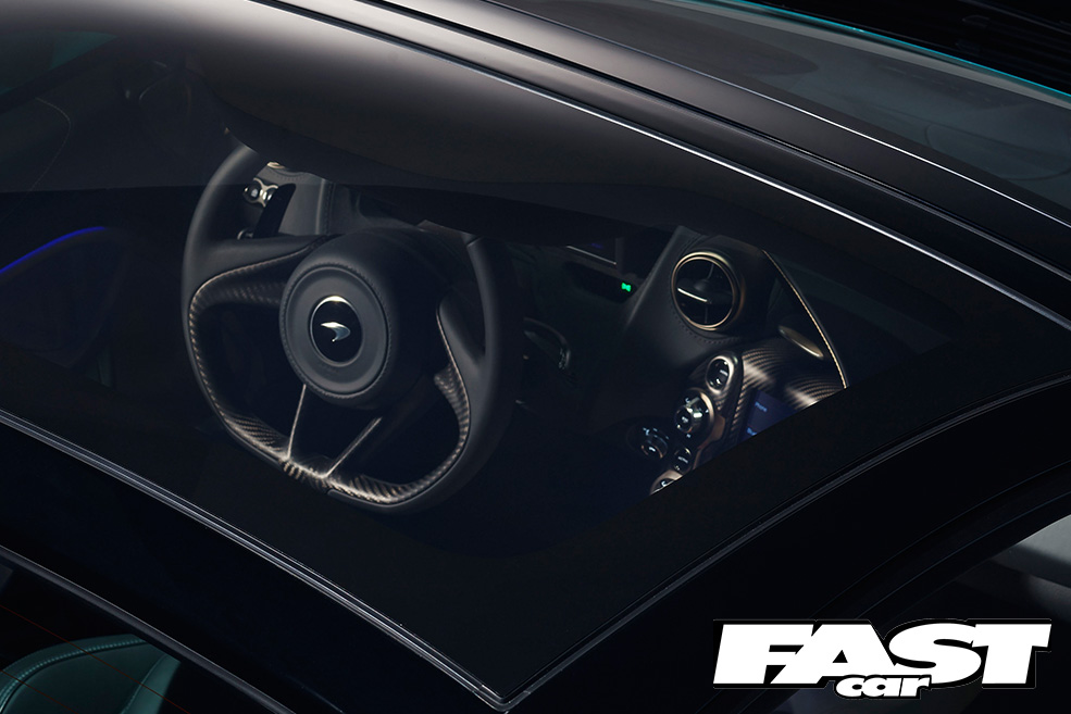 The rather clever patented new 720S Spider electric carbon fibre roof system delivers the fastest-operating time in the supercar class and is available glazed with an electrochromic glass panel that can rapidly switch between tinted and transparent.