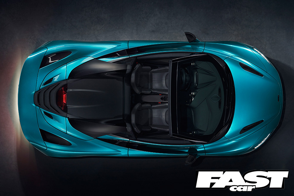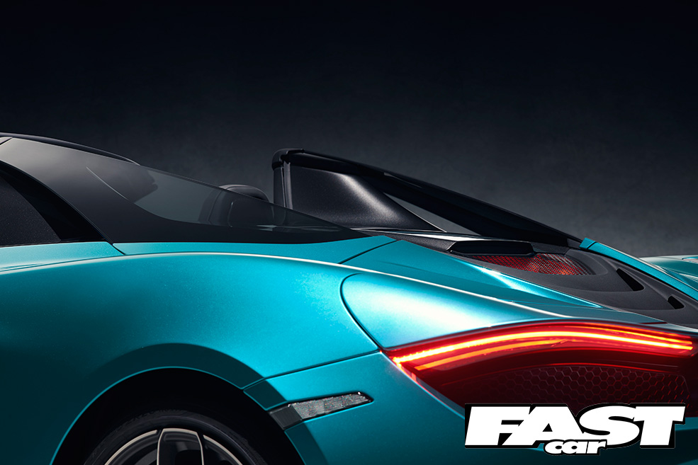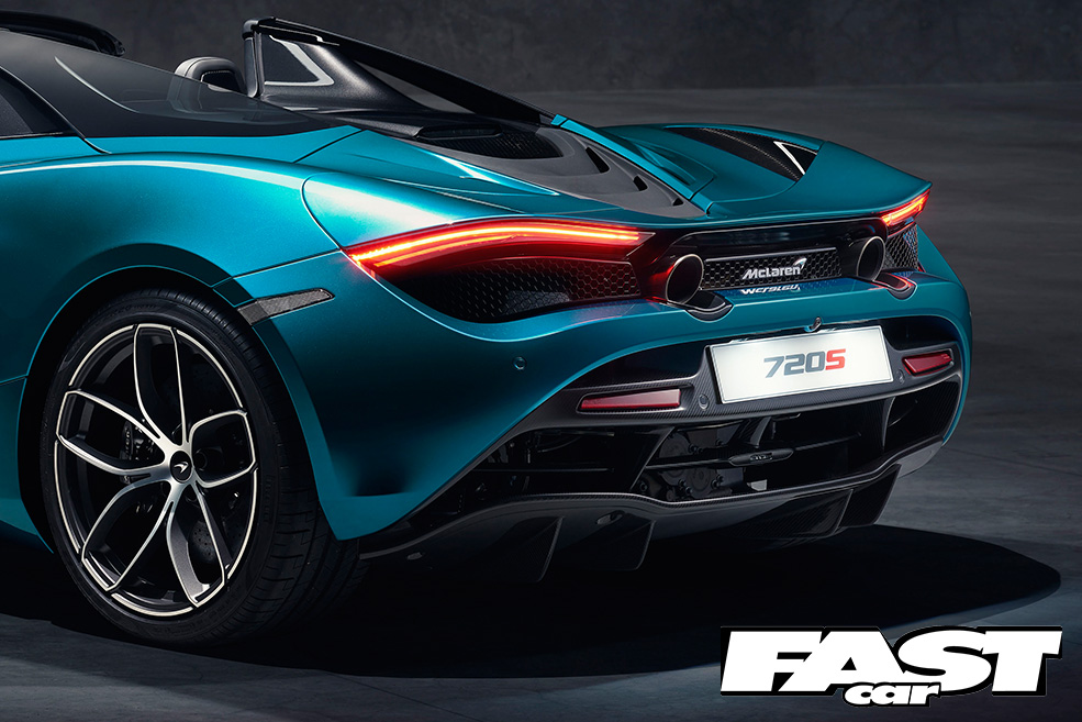 The 720S Spider active rear spoiler aerodynamics is automatically tuned to closed or open-roof driving.