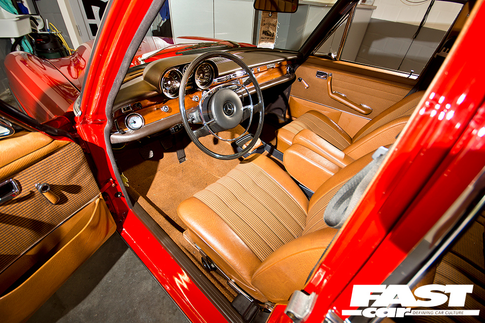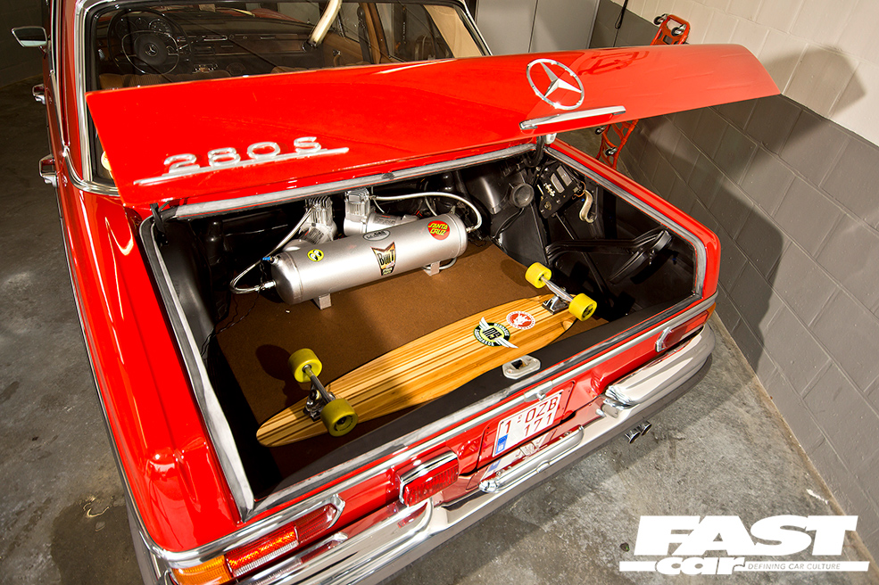 Does it help that the quirky-looking Mercedes W108 was one of the coolest 60s motors ever to come out of Europe? Does it make a difference that it was one of the rare cars built with the longevity to still be on the road today? Sure it does, but it’s arguably more important that Andy has done nothing but enhanced its charm with all the right mods, no more, no less. There’s a kind of art in that sort of simplicity, a laid-back beauty that just can’t be found in a massively complex modern project.