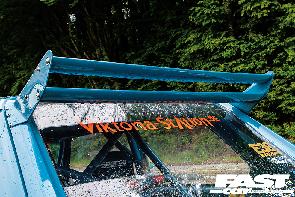 “I drove the body shell to Belgium for a ‘bath’ to get rid of the paint and underseal. I then seam welded the whole shell and installed a big roll cage and painted the car on my own in RAL5009 because we had our own machine paintshop. We picked this colour because we had four friends with Mk1s painted the same shade.” For some years they all had instantly-recognisable ‘Roma Tuning’ stickers on the sides, a former evenings hobby business started in 1998 doing G60 overhauls and engine building, run by mate ‘Robert and ‘Marco, hence the name.”
