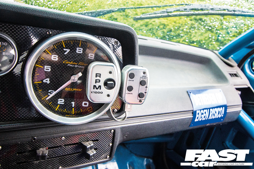The rest appears outwardly fairly conventional with high compression pistons, Cat Cams with solid lifters plus lash caps and vernier adjustable pulleys on both ends. Considering Marco builds this himself, the results are mighty impressive. “Now every two years I change the crank and conrod bearings. Every four years I take the motor out of the car and change nearly everything.” He clearly knows his stuff: “On Facebook ‘Marco’s Motorsport’ there’s a couple of engines that I built. It’s a bit of fun for me.” Marco uses Dutch legend Jeroen Dik: “At the start of my journey I visited many mappers. For nearly 20 years I now go to JD Engineering.”
