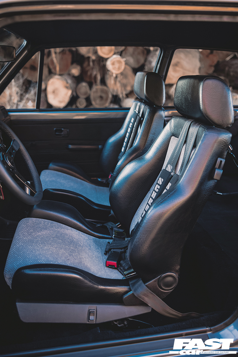 Mk2 Golf dash, Recaro Trophy seats, Schroth harnesses, Renown Monaco steering wheel