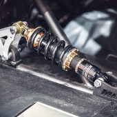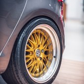 With the V8 in place, the Golf had become enough of a mash-up that no off-the-shelf suspension parts would fit. Luckily, Toni has a good friend at BC Racing in Finland who could fill in the gaps. The front end is essentially an E36 coilover system, but modified to bolt up to the Golf’s standard top mounts, and the headaches didn’t stop there.