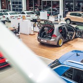 Of course, the first hurdle was righting the damage done by the Golf’s previous owner. Repeat trips to the parts department at work offered up a full set of standard panels and associated repair parts to restore the Mk7 back to factory condition. With the extra performance on tap, you’d let him off some subtle arch flaring and maybe even a GTI kit. However, Toni clearly prefers the element of surprise, right down to the original paint code, halogen headlamps and ironic Bluemotion Technology badge on the tailgate. Recycled parts aside, it’s no eco warrior.
