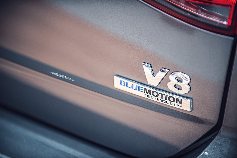 Standard bodywork, V8 and ‘Bluemotion Technology’ badges