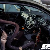 Corbeau Revolution bucket seats, Schroth 4-point harnesses, custom 4-point rollcage, fire extinguisher mounted to passenger exhaust tunnel, all carpet and headlining stripped, deleted rear plastic panels, custom aluminium and carpet floor plates, LD Performance boost controller, custom skate wheel gearstick, Momo Mod.74 steering wheel, Brown & Geeson quick-release, Polo 9N3 clocks, Polo 9N3 GTI pedals, custom boot build for air-ride, 4-gallon brushed air tank, Viair compressor, Pioneer TS-A173CI front speakers, Pioneer TS-A1733I rear speakers, Pioneer AVIC-F88DAB head unit