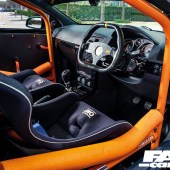OMP Champ-R seats, Sabelt blue 3in 4-point harnesses, OMP Kubic steering wheel with Brown & Geeson quick-release, full GDF Steelworks rollcage, 3-gauge pillar pod with Dragon gauges, false floor with air tank and amps, front Track Car Door Cards and matching rear side panels with orange bolts, Pioneer AVIC-Z920DAB head unit, Pioneer GM-D9701 Mono Block 2400w amp with Pioneer TS-D10D2 12in Dual 2-Ohm subwoofer, Pioneer GM-D8704 Class-D 1200w 4-channel amp for TS-D65C 6.5in 2-way component front speakers, Pioneer TS-D65F 6.5in mid-range coaxial rear speakers