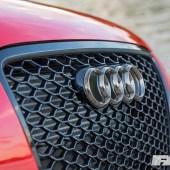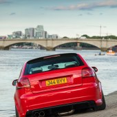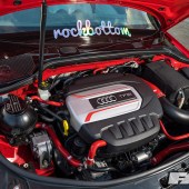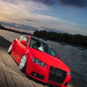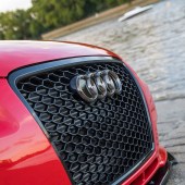 Full re-spray in custom Shimmer Red with pearl base; SRS-Tec wide wings front-and-rear; smoothed and deleted door moulds; S3 side skirts and rear diffuser; RS3 black grille.