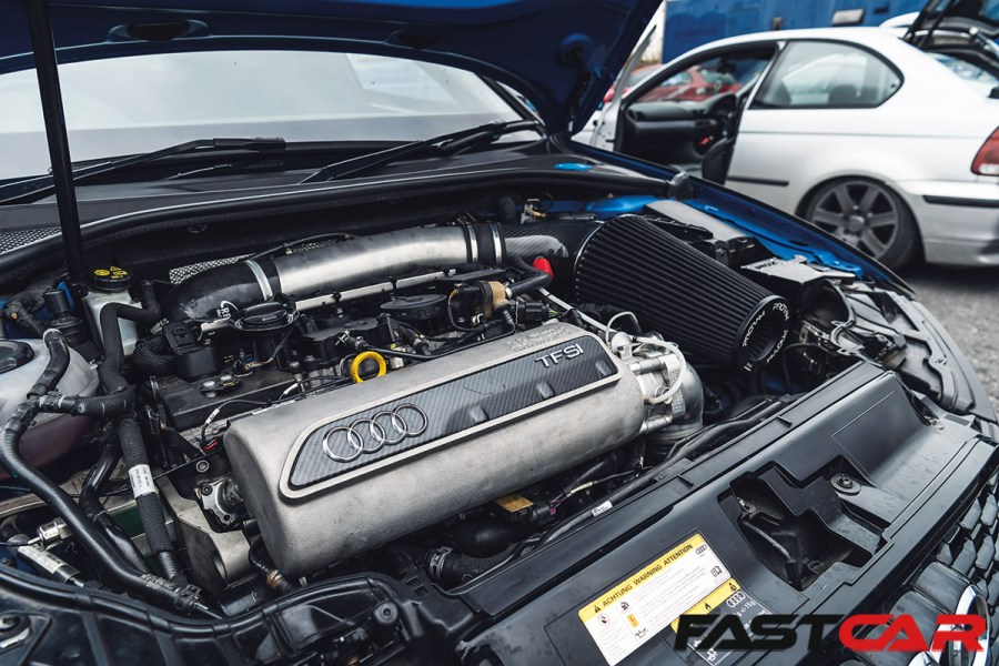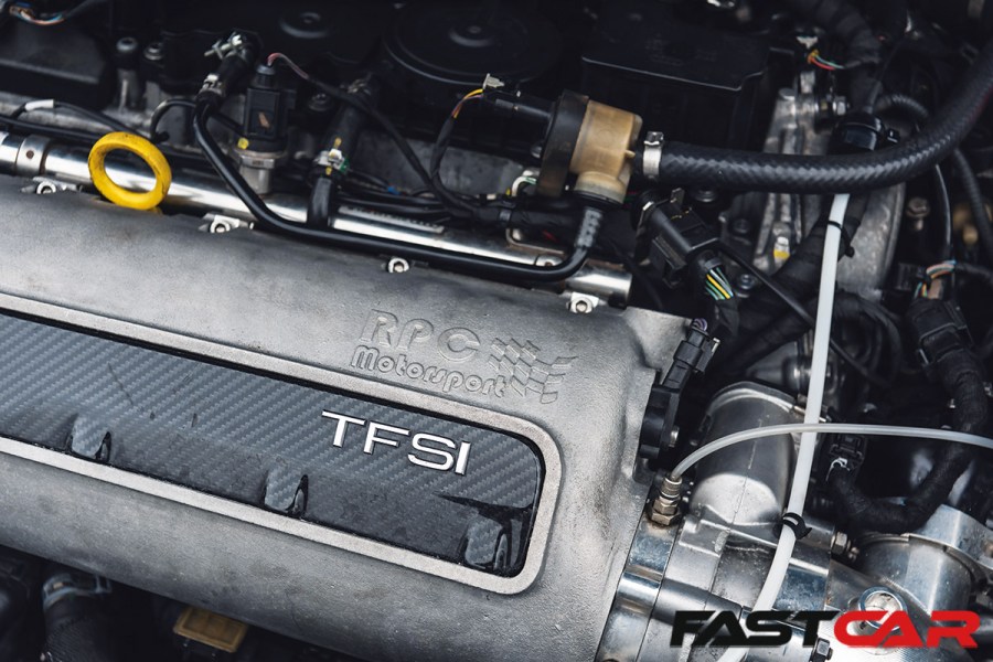 “The new five-cylinder engines are a lot easier to tune,” he explains. “The 8P RS3 had a cast block with five injectors, but the new ones have ten injectors and an ally block – which is relatively soft, so you do have to be careful with them. We’ve pretty much maxed the turbo I have but we’re still evolving, and a lot of that is down to fuelling. It’s still using the stock direct injectors, but turned right down, and we’ve upgraded to 2,600cc port injection to give the car the fuel it needs.”