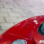 Candy Red, stock arches widened by 2-inches all round, side repeaters deleted and replaced by custom louvres, front number plate recess smoothed, USDM rear bumper, bootlid spoiler deleted and replaced with custom louvres, chrome peep mirror