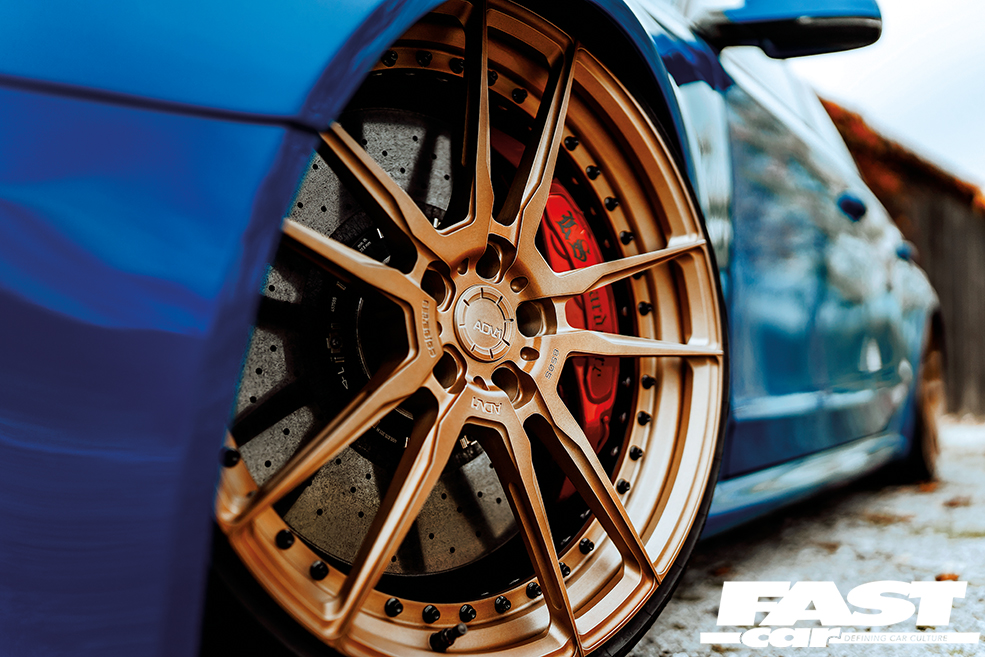 “It looks and drives OEM, and we’re proud of that,” he grins, casting a cheeky bit of side-eye at his damn-low stance and grinning further. “We added the carbon Muecke wings for practical reasons, plus a few trim pieces from RS Carbon just because we wanted to, but it’s all been an exercise in keeping it factory-looking.”