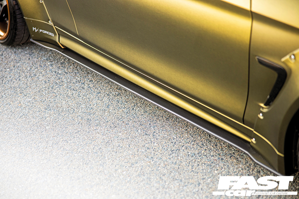 Impressive as all that is, and impressive as the modified BMW 440i looks as a result of all those styling enhancements, Jermhel still needed the right set of wheels to properly fill out those massive arches or else his F32 would end up looking seriously under-wheeled. “I didn’t know anything about wheels when I was picking a set for my vehicle. I did not know what brand to go with or what style to pick,” he admits, but that doesn’t mean he didn’t have an idea of what he was after in mind. “What I knew was that I wanted an aggressive look on the wheels and wanted a stepped lip. Finding a company which made wheels for wide-body vehicles was tough. Also, since I was the first to wide-body an F32 4 Series in the States, no one had an idea on the wheel specs for my car. When I came across MV Forged, it had exactly what I was looking for; not only did it have the style I wanted but it had made wheels for multiple wide-body BMWs,” he says and it’s fair to say that MV pulled it out of the bag for this build.