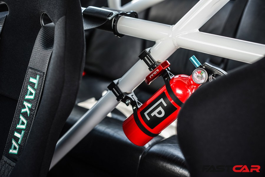 The Recaros are joined by Takata harnesses, and there’s a Renown steering wheel with Chasing JS titanium steering wheel bolts, an NRG short hub and a Works Bell tilt hub. There’s also an RTD Race shifter with a CAE British Racing Green knob – a nice little nod to the centre caps on the outside – along with a Storm Motorwerks handbrake handle with a Condor M-Rain gaiter. Finally, Alex also has an ST Track gauge pod that houses the AEM AFR, oil pressure and volt gauges, plus an Ecliptech shift light, and the finishing touch comes courtesy of the carbon LTW-style shifter and glovebox trim. It’s all rather more full-on than the exterior, but we like the contrast and we love everything that Alex has done in here.