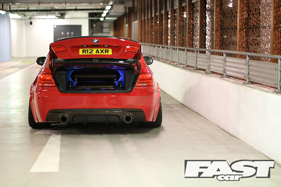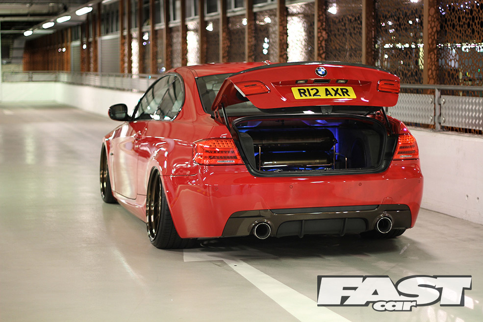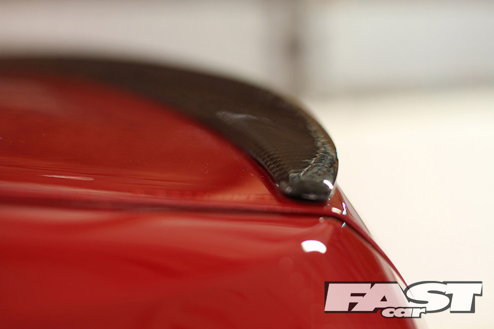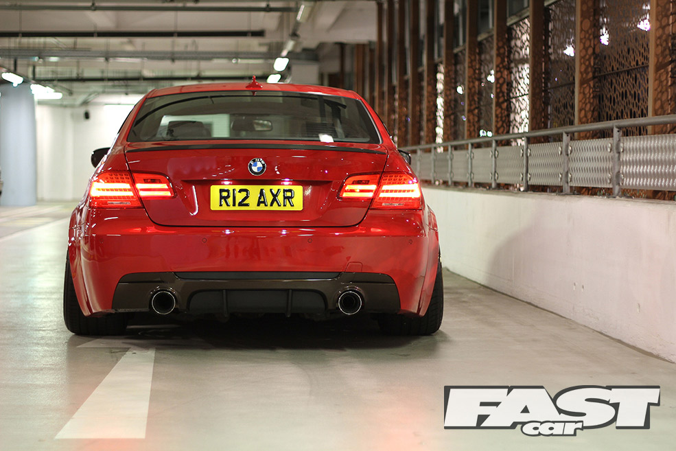 Japan Red (BMW Individual colour), rear arches and bumper modified to M3 width; rear lip spoiler; CPS carbon-fibre front lip.