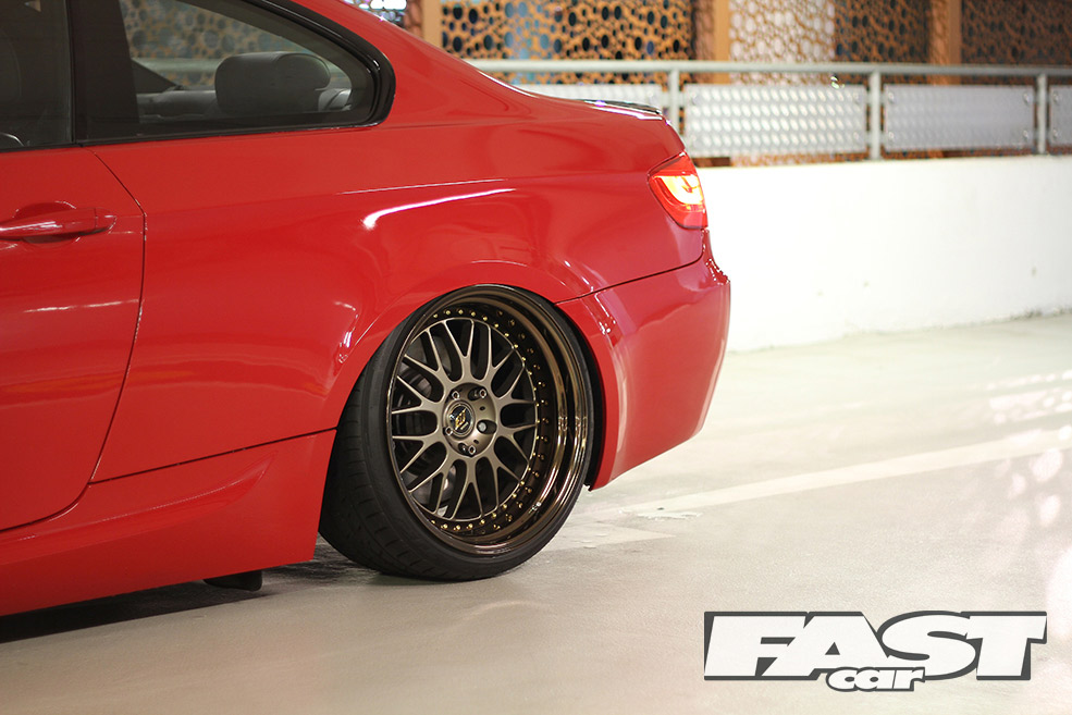 The attention to detail is remarkable and it’s one of the most considered and delectable installs we’ve seen. The finishing touch to achieve the E92’s finger-lickin’ stance was the fitment of some custom spacers to get those WORKs sitting in precisely the right place.